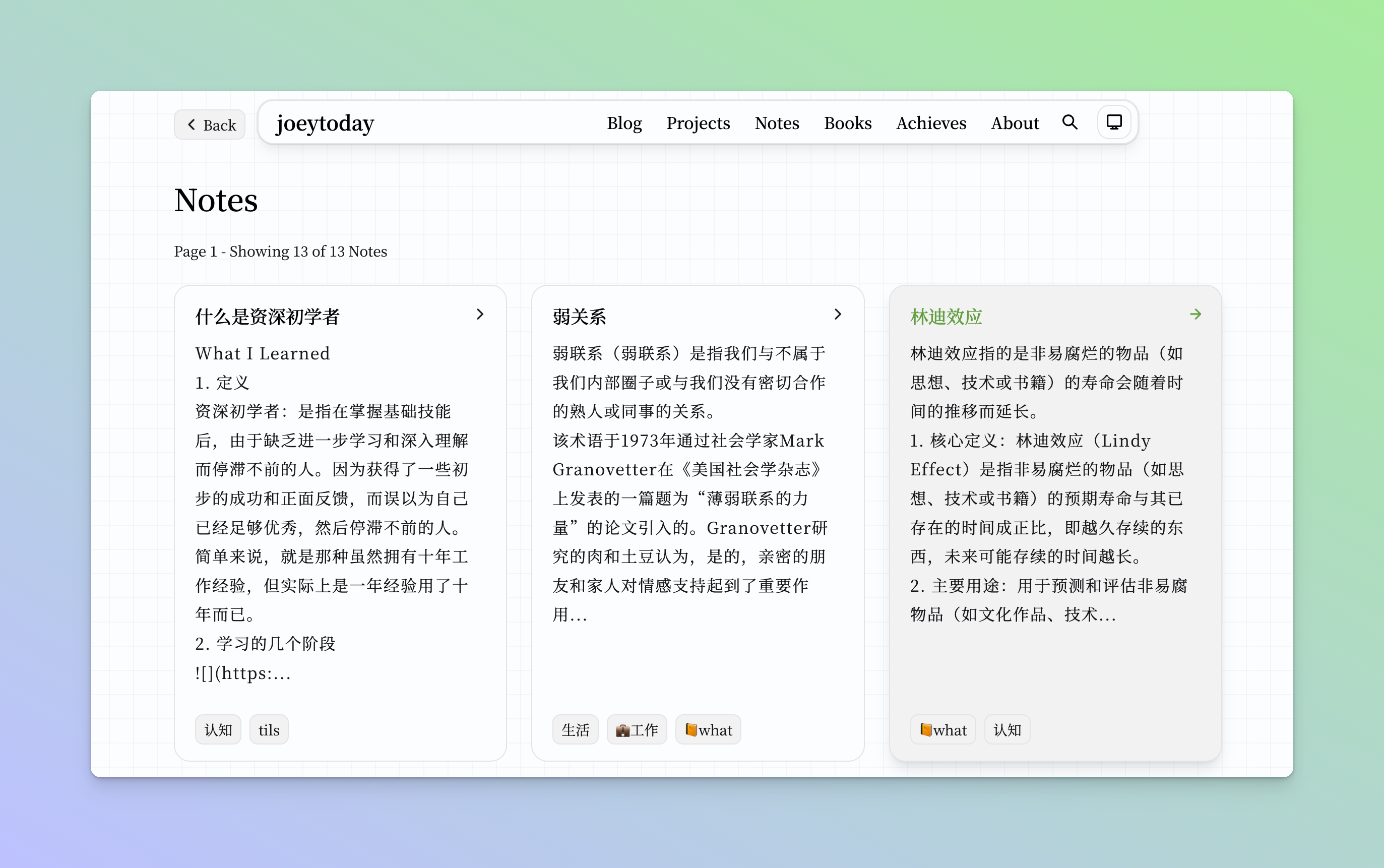 本周主要是在折腾自己的博客,给博客增加了 Notes 和 Books 页面,同时改了插件,能从 Obsidian 直接发布到博客,少一个步骤。